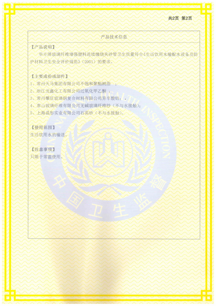 連續(xù)纏繞玻璃鋼管衛(wèi)生許可批件1