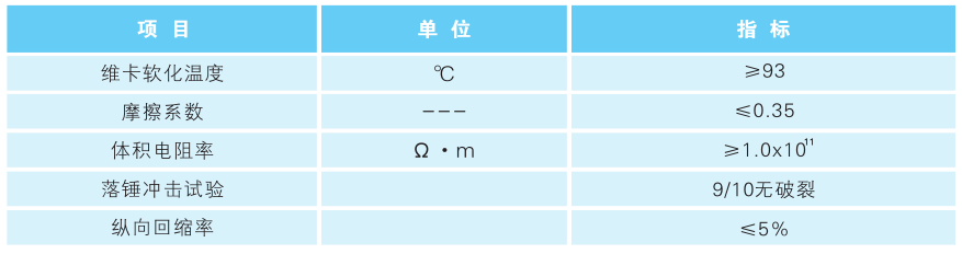 PVC-C電力管主要性能指標